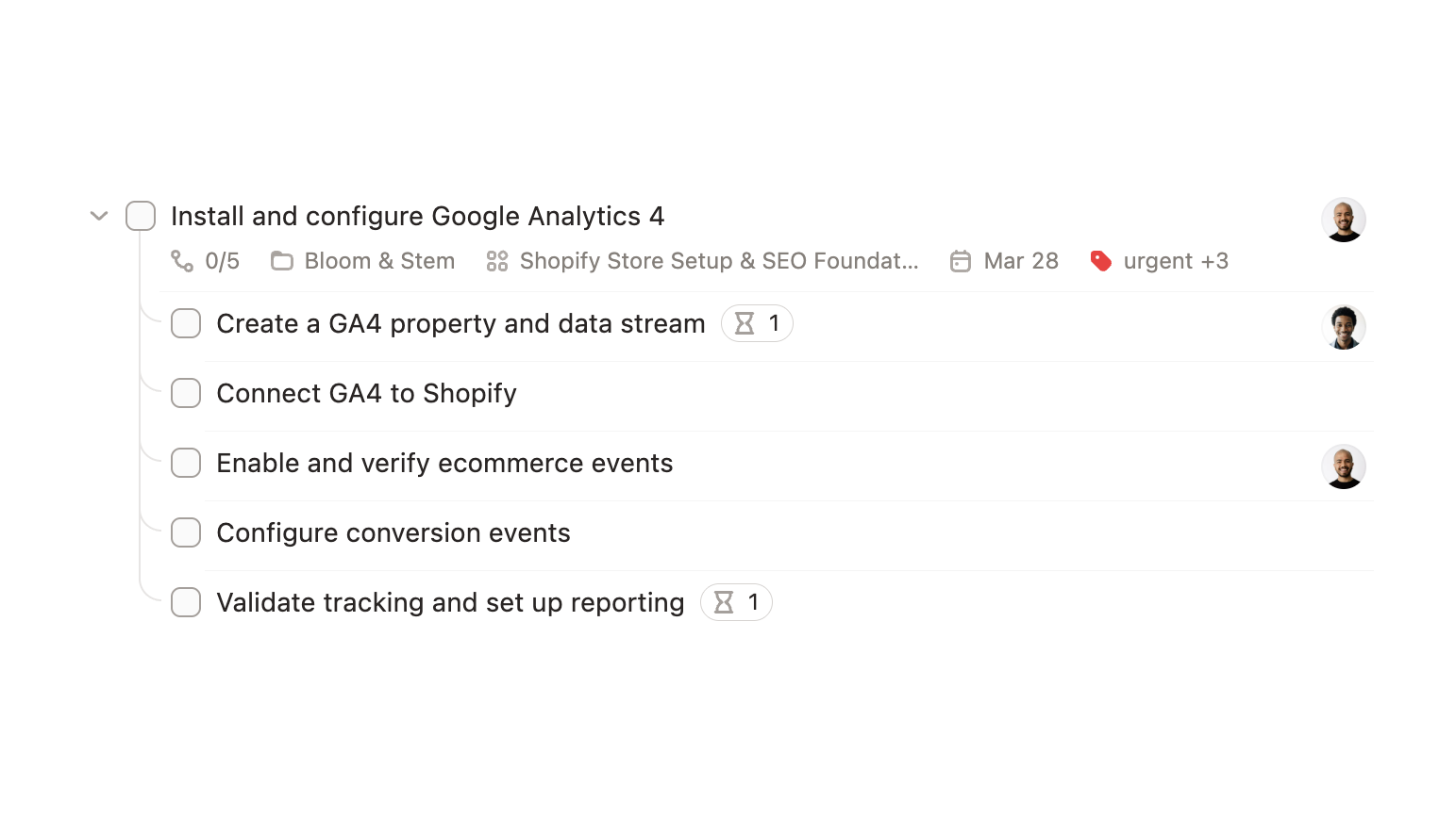 If you've set up a recurring task with subtasks, each new recurrence gets a fresh copy of the full breakdown with statuses reset, ready to go again.